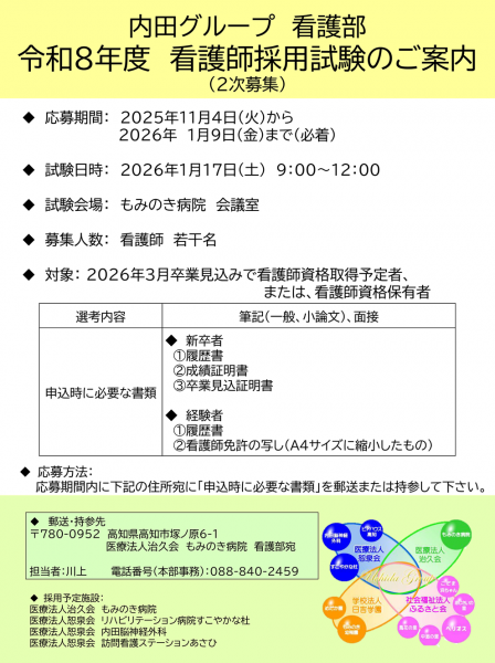 看護師(2026年4月採用)の採用についてお知らせいたします。