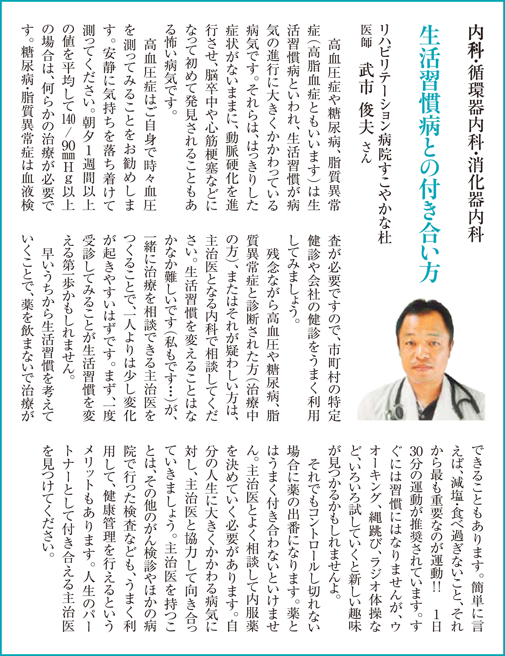 | 平成28年年1月19日 | 武市俊夫 医師 | その薬、本当に必要ですか? |