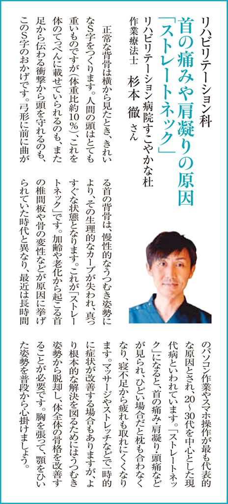 | 平成28年年2月16日 | 杉本徹 作業療法士 | 首の痛みや肩凝りの原因「ストレートネック」 |