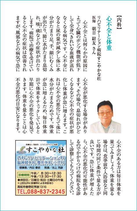 | 平成28年年4月19日 | 朝日尉友 医師 | 心不全と体重 |
