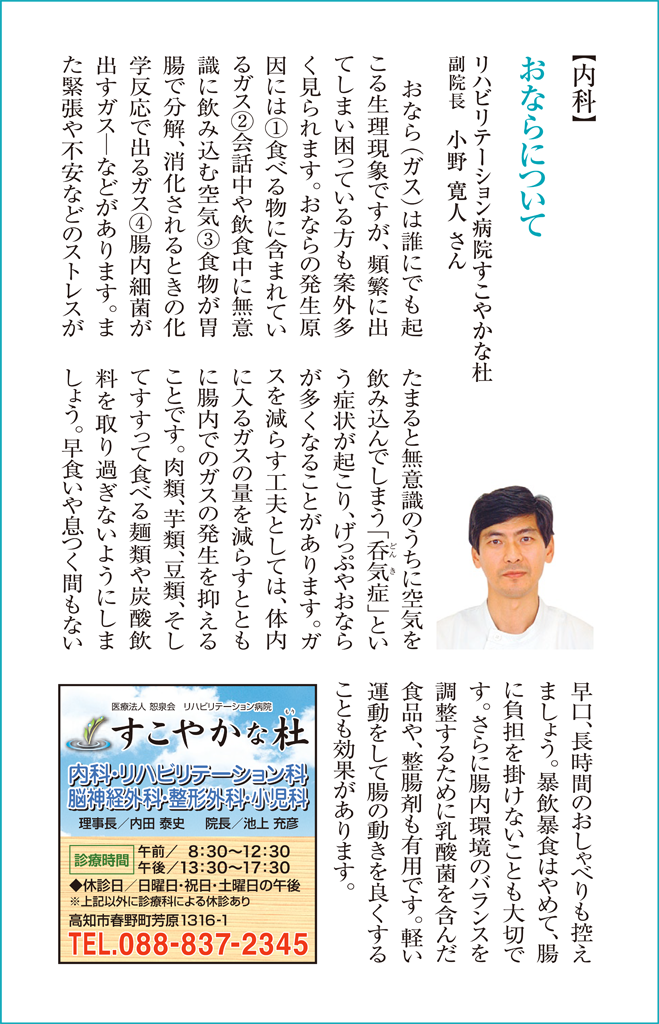 | 平成28年年6月21日 | 小野寛人 医師 | おならについて |