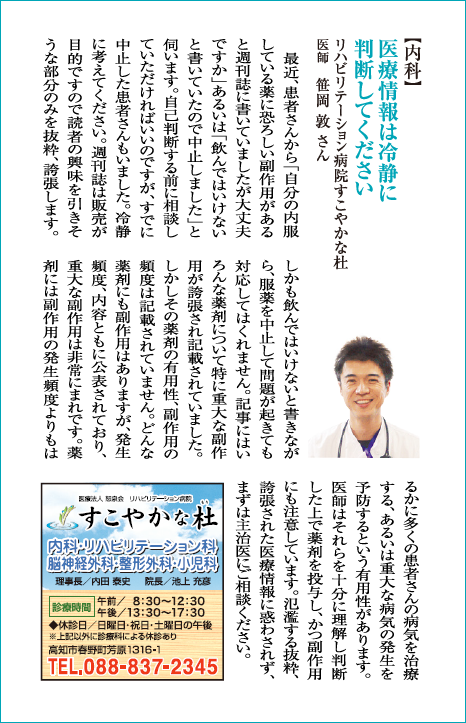 | 平成28年年8月16日 | 笹岡 敦 医師 | 医療情報は冷静に判断してください |