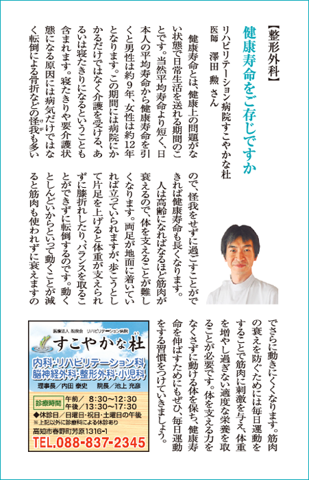 | 平成28年年9月21日 | 澤田 勲 医師 | 健康寿命をご存じですか |