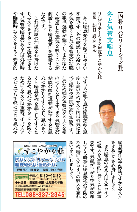 | 平成29年年12月20日 | 朝日 尉友 看護師 | 冬と気管支喘息 |