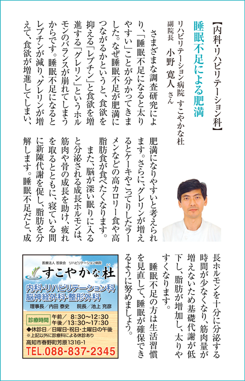 | 平成29年2月21日 | 小野 寛人 医師 | 睡眠不足による肥満 |
